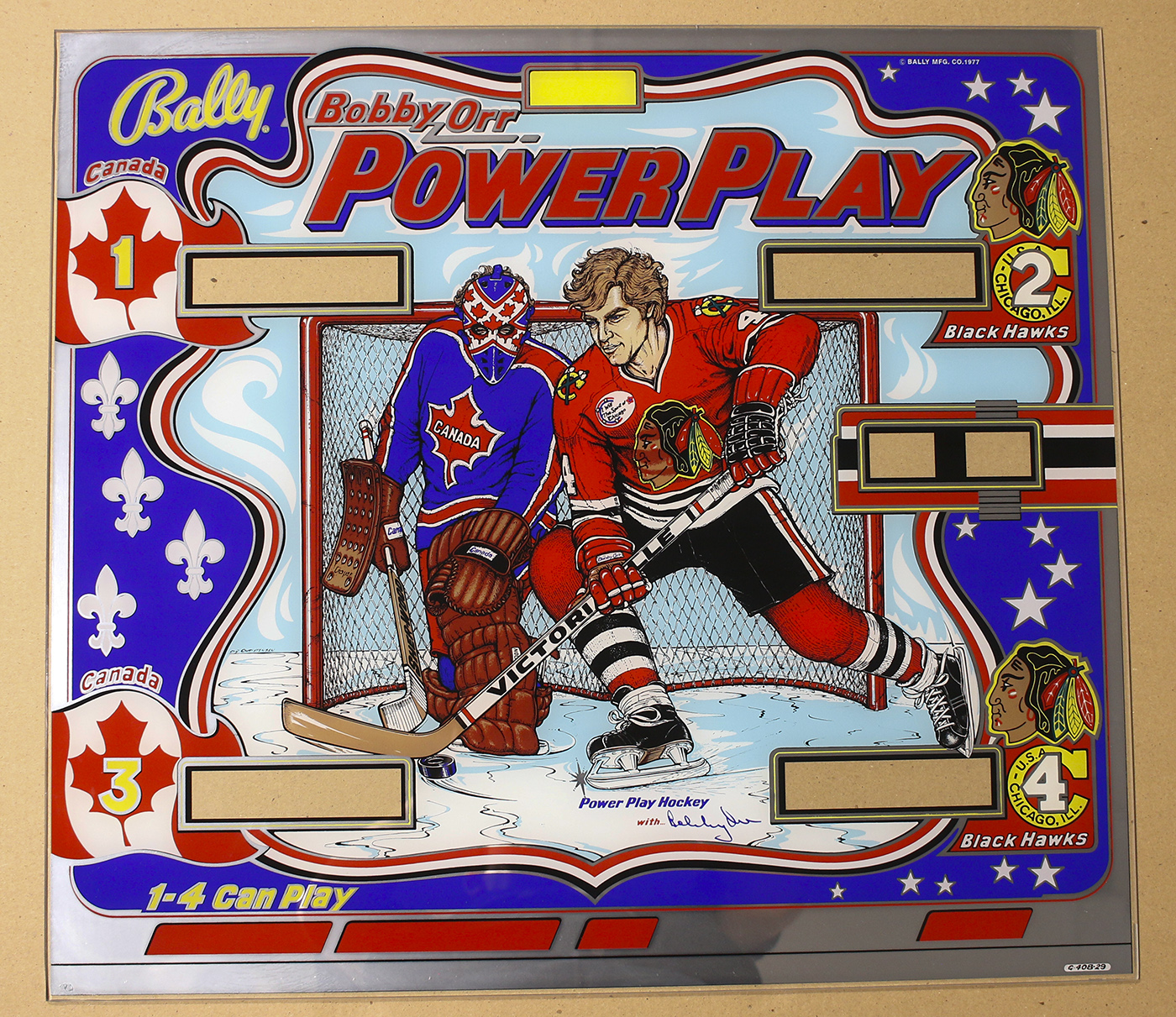 This is a Bobby Orr Power Play repro backglass with a very small blemish in the mirror layer. Top right, on the stars outlines. See gallery closeup. The rest of the glass is fine, and top QC as normal. Will certainly save a game on a budget. Cannot be sold as regular stock, so priced to clear.