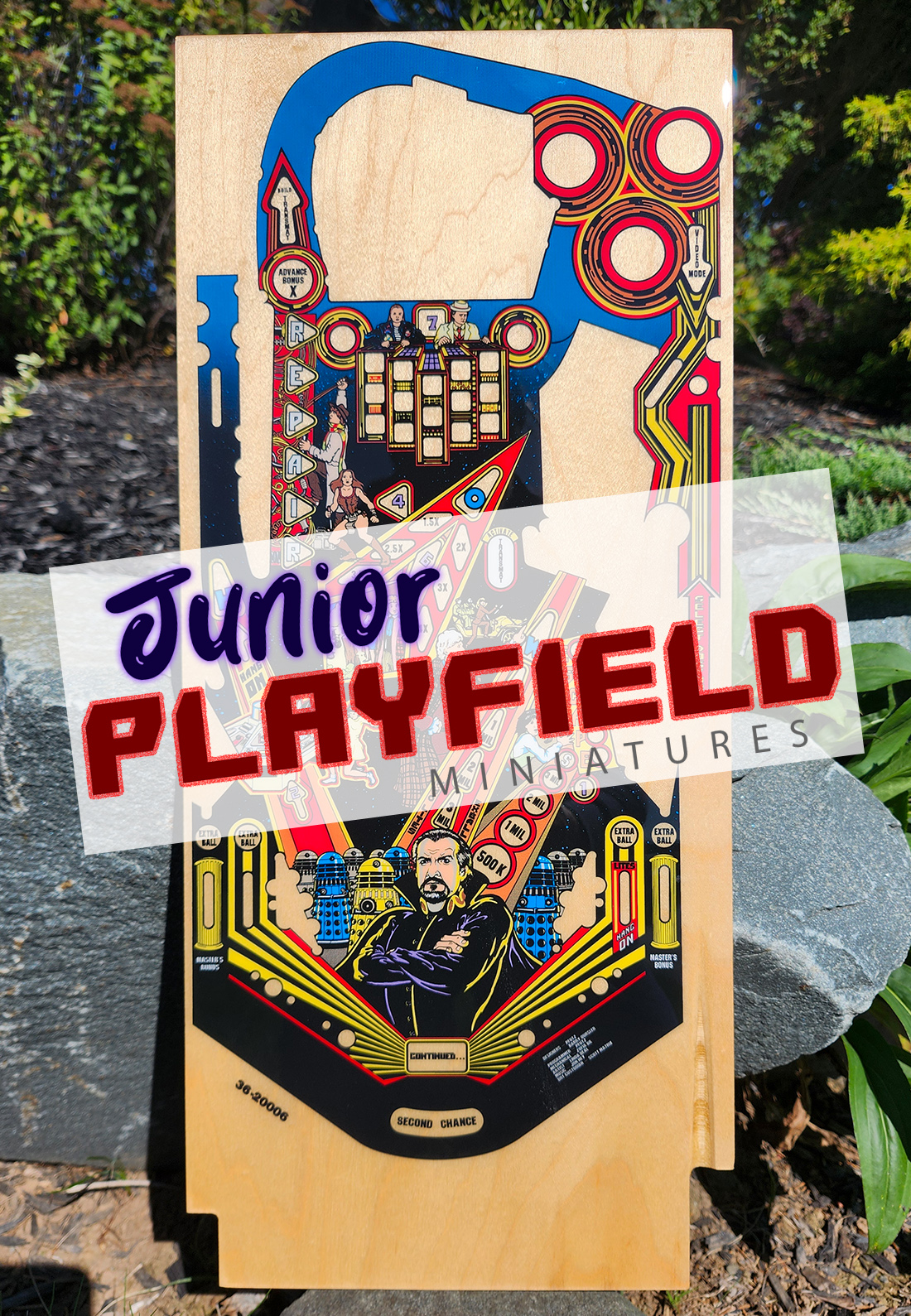 These miniatures follow almost the same production path as their big brothers.  CNC cut from the same CPR custom gameboard wood stock, with a wee shooter lane included.  CPR master artwork and colors, match exactly to full size reproduction playfield prints.  5-layer clearcoated for the exact same finish too!  Please check out the photo gallery for examples – sorry, we can’t photograph every title.  Try to imagine!